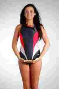 Kostium jednoczęściowy z wewnętrznym biustonoszem i wyjmowanymi wkładkami, które podtrzymują biust. Kostium z tyłu zabudowany. Szersze ramiączka i kontrastujące kolorystycznie panele.