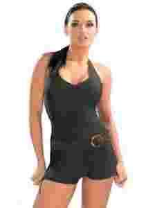 Kostium jednoczęściowy odpowiedni dla każdej figury. Bardzo ładnie prezentuje się zarówno na szczupłej jak i pełniejszej sylwetce. Wewnętrzny biustonosz. Wiązanie na szyi pozwala odpowiednio ułożyć górę kostiumu . Wyprofilowany dekold, dobrze podtrzymujące biust miseczki, na dole szorty. . Fajny kostium, uszyty z wysokogatunkowych materiałów, polecany zarówno na plażę jak i na basen.