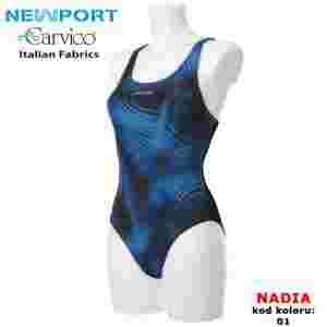 Kostium pływacki wykonany z dzianiny NEWPORT o podwyższonej odporności na działanie chloru.