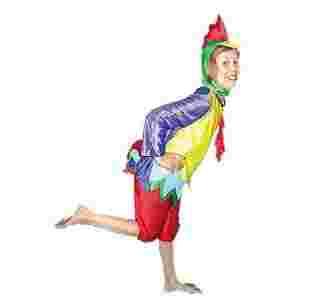 Witam przedmiotem tej aukcji jest: Kostium Kogut strój 3 częściowy wykonany z kolorowego lureksu czerwone spodnie zakończone kolorowym ogonem na bluzie naszyte czerwone korale kapturek wykończony dziobem i kogucim grzebieniem Idealny kostium na urodziny kinder-bale zabawy karnawałowe bal przebierańców Dostępne rozmiary 134/140 Do każdego stroju gratis niespodzianka ***UWAGA*** Strój może nieznacznie różnić się od tego ze zdjęcia