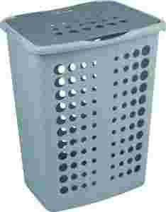 Kosz na bieliznę, idealnie nadaje się do stosowania w łazience i pralni. Plastikowy, z otworami zapewniającymi cyrkulację powietrza i pokrywą estetycznie zamykającą zawartość wewnątrz zbiornika. Nie wymaga stosowania dodatkowego worka chroniącego bieliznę. Produkt dostępny w gamie kolorystycznej: SZARO-SREBRNY Wymiary: 397x299x500 mm