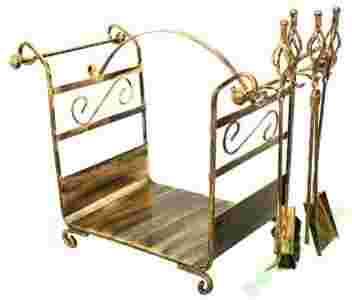 Kosz na drewno + akcesoria kominkowe do kominka