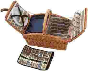 Pełne wyposażenie kosza sprawia, że wystarczy jeszcze tylko włożyć do środka jedzenie i napoje i można ruszać na piknik! Kosz posiada wewnętrzną komorę termiczną, która dłużej utrzymuje temperaturę włożonych do niej dań czy soków, oraz osobne etui w którym schowane są sztućce. Wszystkie naczynia zabezpieczono dodatkowo specjalnymi pasami, które utrzymują je w stabilnej pozycji i sprawiają, że nic nie przesuwa się w trakcie przenoszenia.
