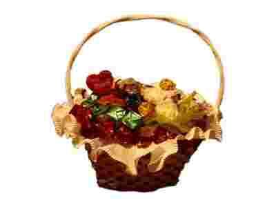 Każdy kosz jest owinięty w folię dekoracyjną oraz przesłany w kartonowym dobrze zabezpieczonym opakowaniu.