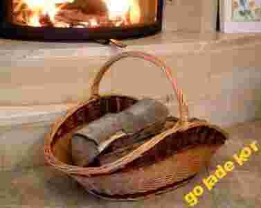 Kształt koszyka jest specjalnie dostosowany do noszenia i przechowywania drewna do palenia w kominku.