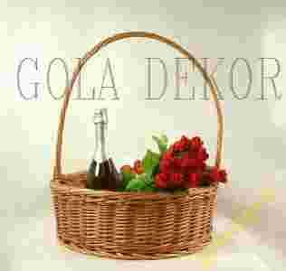 Kształt koszyka jest specjalnie dostosowany do EKSPONOWANIA jego zawartości.Dno koszyka również wyplecione jest z wikliny. Sam kosz pięknie się prezentuje, i spełnia też użyteczną rolę.