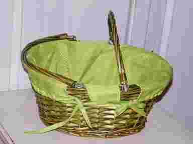 Kosz wiklinowy z materiałem.