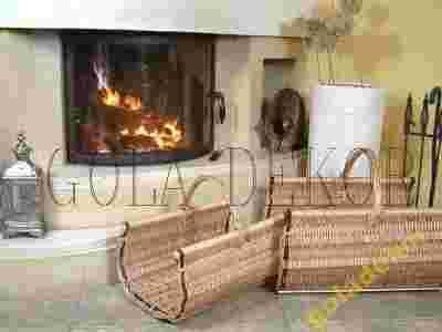 wykonane ręcznie, z okorowanej, jasnej, wysokogatunkowej wikliny. Kształt koszyków jest specjalnie dostosowany do noszenia i przechowywania drewna do palenia w kominku.