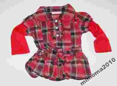 KOSZULA TUNIKA W KRATKĘ BOMBKA 2 ok 86/92 czerwona