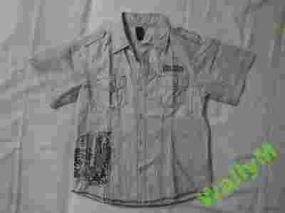 Przedmiotem tej aukcji jest koszula z krótkim rękawem w beżowe paseczki z fajną aplikacją.