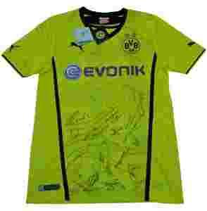 Na koszulce odnajdziemy autografy trzech reprezentantów Polski – Jakuba Błaszyczkowskiego, Roberta Lewandowskiego (który w tym sezonie przeszedł do Bayernu Monachium) i Łukasza Piszczka. Ale co najciekawsze koszulkę zdobią autografy Mistrzów Świata z 2014 r. z mundialu w Brazylii. Ci piłkarze to: Mats Hummels (Borussia Dortmund), Roman Weidenfeller (Borussia Dortmund), Kevin Grosskreutz (Borussia Dortmund), Erik Durm (Borussia Dortmund), Marco Reus (Borussia Dortmund).