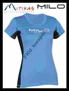 Koszulka posiada wstawki boczne w kolorze czarnym z elastycznego materiału, płaskie szwy, nadruk "Milo" z przodu. Średnia waga koszulki to ok. 130g