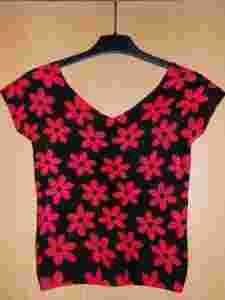 koszulka damska, w kwiaty, czarno-czerwona, rozm.M
