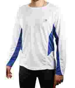 Koszulka jest koloru białego z niebieskimi wstawkami pod pachami.