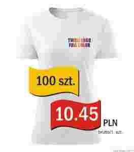 Koszulka z nadrukiem - technika termotransferu laserowego z wycinaniem po obrysie - jeżeli logo zawiera przejścia tonalne, jasne kolory proponujemy wydruk laserowy i wycinanie po obrysie.
