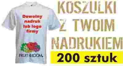 Wykonanie 200 szt. koszulek z jednokolorowym nadrukiem jednostronnym (tył lub przód) do formatu A4.