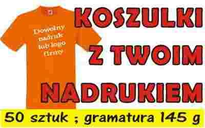 Wykonanie 50 szt. koszulek z jednokolorowym nadrukiem jednostronnym (tył lub przód) do formatu A4.