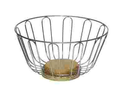 KOSZYK DRUCIANY OKRĄGŁY Z DREWNIANĄ PODSTAWĄ