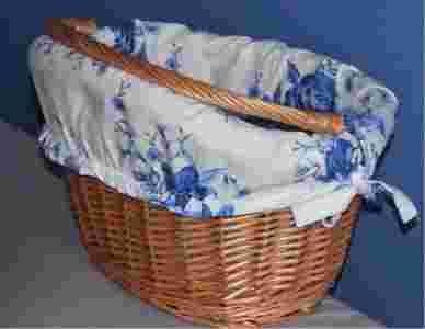 Kosz wiklinowy na rower z garbem Z NATURALNEJ WIKLINY z obszyciem - WZÓR OBSZYCIA DO WYBORU (100 % BAWEŁNA) - kosz doskonale nadaje się na wycieczki rowerowe, zakupy, do wożenia psa, kota. Solidna konstrukcja zapewnia wożenie zakupów w bezpiecznej i wygodnej pozycji. Kosz umieszcza się na przedniej części kierownicy za pomocą metalowych odpowiednio wygiętych prętów zabezpieczonych specjalnym tworzywem sztucznym.