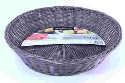 Okrągły koszyk marki Ambition przydatny w każdym domu. Kosz wykonany z polirattanu o wyglądzie imitującym naturalną wiklinę. Wodoodporny, jest łatwy w utrzymaniu czystości. Można myć w zmywarce.Wymiary:Średnica 38cmWysokość 9,5cmKolor: brązowy