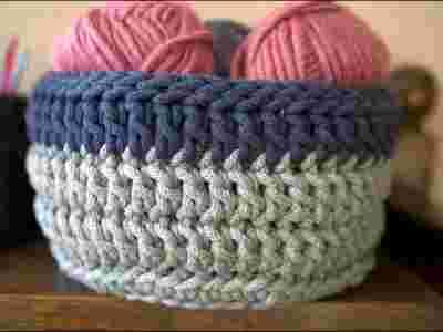 KOSZYK PLECIONY ZE SZNURKA BAWEŁNIANEGO