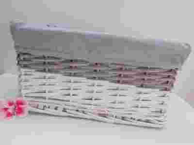 Stan: Nowy Materiał wykonania: rattan Długość (dłuższy bok) w cm: 27 Wysokość: 13 [см] Szerokość (krótszy bok) w cm: 16 Kolor: biały, odcienie szarości