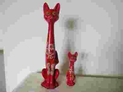 KOT KOTY, CERAMICZNE, CZERWONE, RECZNIE MALOWANE