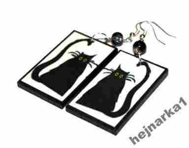 kot koty czarne kolczyki decoupage promocja