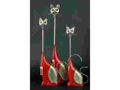 Figurki-rzeźby wykonane z egzotycznego drewna w czerwonym kolorze (LITE DREWNO) połączonego z metalem.Figurki - KOTKÓW - wykonane bardzo starannie i solidnie przez indyjskich rzemieślników - 80% ręczna praca. Bardzo efektowną ich częścią są okucia ze srebrzonego metalu oraz tzw."niemieckiego srebra".