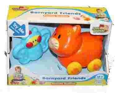 Zwierzątko z efektami dźwiękowymi - na kółkach, na "pilota" na kablu. Po naciśnięciu na pilota zwierzątko porusza się do przodu albo do tyłu. Wielkość zwierzątka ok. 14cm. Wszystkie elementy są zaokrąglone i bezpieczne dla dziecka. Bajecznie kolorowa. Zabawki tej serii wygodnie mieszczą się w dziecinnych rączkach, kształtując zmysł dotyku, a ich intensywne kolory stymulująco wpływają na rozwój mózgu dziecka.