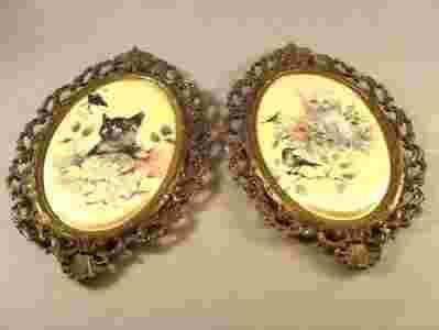 KOTY Duże dwa obrazki - jedwab? - satyna ?