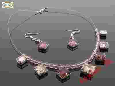 KP4062 KOMPLET naszyjnik+kolczyki RÓŻOWY LEXIM