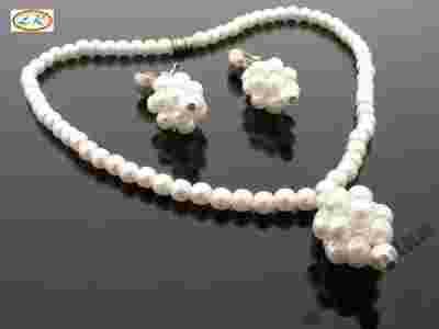 KP9147 RETRO extra komplet PERŁY BIAŁE ślub