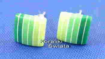 kpl315 KOLCZYKI kwadrat w paski 8x8mm zielone