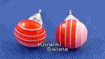 kpl318 KOLCZYKI koła w paski 8mm czerwone