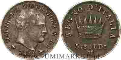Królestwo Napoleona, 5 soldi, 1814 rok, M, Ag