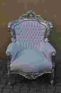 KRÓLEWSKI PIĘKNY BAROKOWY FOTEL SREBRNO BIAŁY .LUX
