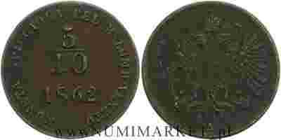 Kr. Lombardzko-Weneckie, 5/10 soldo, 1862 rok, A