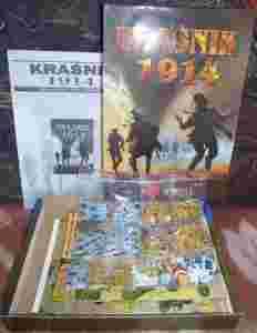 Przedmiotem niniejszej aukcji jest planszowa gra strategiczna widoczna na załączonym, autentycznym zdjęciu (Real Photo). Poniżej jej szczegółowa charakterystyka: Nazwa Gry: Kraśnik 1914 Rodzaj: planszowa gra strategiczna (historyczna, wojenna) dla 2–4 osób od lat 14 System Bitewny: Wielka Wojna 1914–1918 Wydawca: Taktyka i Strategia (Polska) Miejsce i Rok Wydania: Warszawa b.r.w. Pozostałe Informacje: autorzy – Sławomir Łukasik (gra), Arkadiusz Wróbel (okładka), Tomasz Hanas (mapa). Zawartość: dwuczęściowe masywne pudełko (denko plus wieczko), dwuczęściowa mapa o wymiarach 2 x 50/70 cm, 360 sztancowanych żetonów jednostek bojowych, żetony pomocnicze, 24–stronicowa instrukcja z przepisami gry oraz scenariuszami. Gra od nowości nie posiadała kostki. Stan Zachowania: Idealny. Gra jest nowa, nigdy nie była używana (jestem jej pierwszym właścicielem od nowości). Żetony zostały już wypchnięte z ramek (lub w przypadku pomocniczych starannie porozcinane) i posegregowane w 14 woreczkach strunowych. Kompletność: gra jest kompletna w 100%. Żetony jednostek bojowych zostały przeze mnie dla pewności dokładnie sprawdzone w oparciu o ich wykaz w tabelach siły w instrukcji. Ewentualne pytania proszę kierować na maila poprzez opcję „Pytanie do Sprzedającego”.