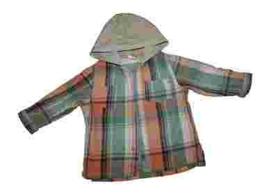 Kraciasta koszula z kapturem dla chłopczyka.