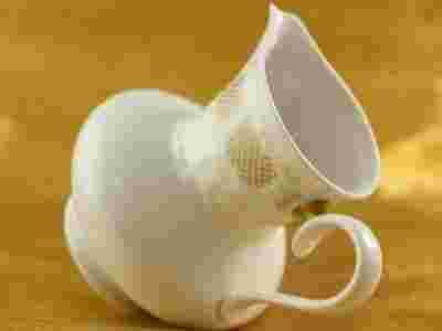 Mlecznik wykonany z doskonałej jakości,imponująco białej porcelany,pod górną krawędzią wkomponowano reliefowe rezerwy w których umieszczono złotą,subtelną krateczkę.Całość wykończono pięknie wymodelowanym uchem i wylewem.Uwagę zwraca doskonała jakość wykonania oraz ponadczasowy fason.