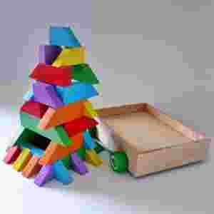 Kreatywne drewniane klocki w wózeczku 30 szt