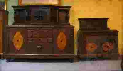 Dębowy komplet z lat 1[zasłonięte]910-19, w skład którego wchodzi kredens i komoda. Kredens w górnej części przeszklony, boczne szyby szlifowane. Zarówno w kredensie jak i w komodzie wiele wspólnych nawiązań, wstawki z orzech w drzwiach, ranty blatów z piękną snycerką... Meble po renowacji z pewnością będą ozdobą pomieszczenia w którym się znajdą.
