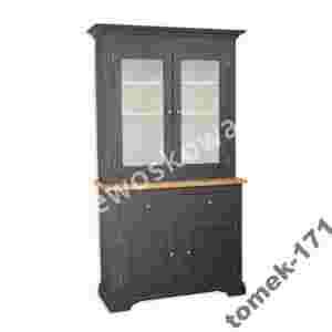 Prezentowany dwukolorowy kredens to propozycja dla miłośników wyrafinowanego stylu. Mebel został wyprodukowany głównie z olchowego drewna litego. Blat kredensu zrobiono z drewna dębowego. Powierzchnię kredensu pokryto dwukrotnie farbą ekologiczną, natomiast na dębowy blat naniesiono dwie warstwy lakieru, który zabezpiecza i podkreśla piękną strukturę drewna. Część górna mebla składa się z szafki zamykanej przeszklonymi drzwiczkami. W szafce zostały zamontowane dwie półki. Ponadto, górę kredensu wyposażono w szuflady będące efektywnymi i praktycznymi schowkami. Dół mebla stanowią podobnie - szafka z półkami i dwie szufladki. Szuflady są otwierane na prowadnicach co poprawia komfort użytkowania. Wnętrze mebla efektownie pomalowano na kolor biały. Całość dopełniają gustowne srebrne gałki. Dzięki wykorzystaniu wysokogatunkowego drewna jest on trwały, funkcjonalny i przez długie lata zachowa swój piękny, ciekawy wygląd, nadając wyjątkowy charakter całemu mieszkaniu.