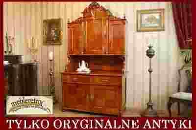 Przedmiotem aukcji jest przepiękny, w pełni oryginalny kredens Ludwik Filip - ludwikowski - którego powstanie datuje się na połowę XIX wieku (ok. 1860r.). Mebel pochodzi z Wrocławia; tam został zakupiony, a pod pomocniczym wysuwanym blatem naklejone są stare, XIX-wieczne gazety wrocławskie! Kredens fornirowany jest ciepłą i wzorzystą czereśnią układaną w jodełkę.