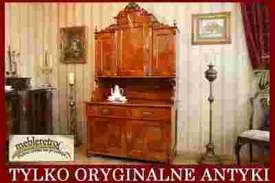 Jest to wyjątkowy i już niestety rzadko spotykany model, w 100% oryginalny; górna centralna część mebla - drzwiczki,gzyms są delikatnie gięte i profilowane!