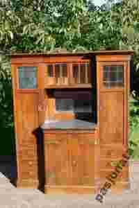 Kredens Secesyjny Dębowy kolumny z kryształem