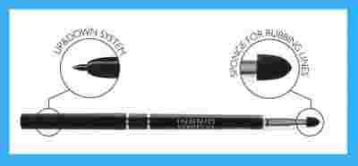 Automatyczna kredka do oczu z gąbką do rozcierania kresek z systemem up&down, dzięki któremu można wkręcić rysik z powrotem.