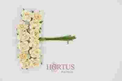 Opakowanie zawiera 144 różyczek (12 pęczków po 12 różyczek) - z kwiatem o średnicy około 1,5 cm. Starannie wykonane z papieru. Nóżka różyczki o długości około 6 cm wykonana jest z zielonego papieru u druciku.