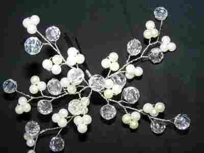 Kremowy kryształ stroik do włosów na szpilce